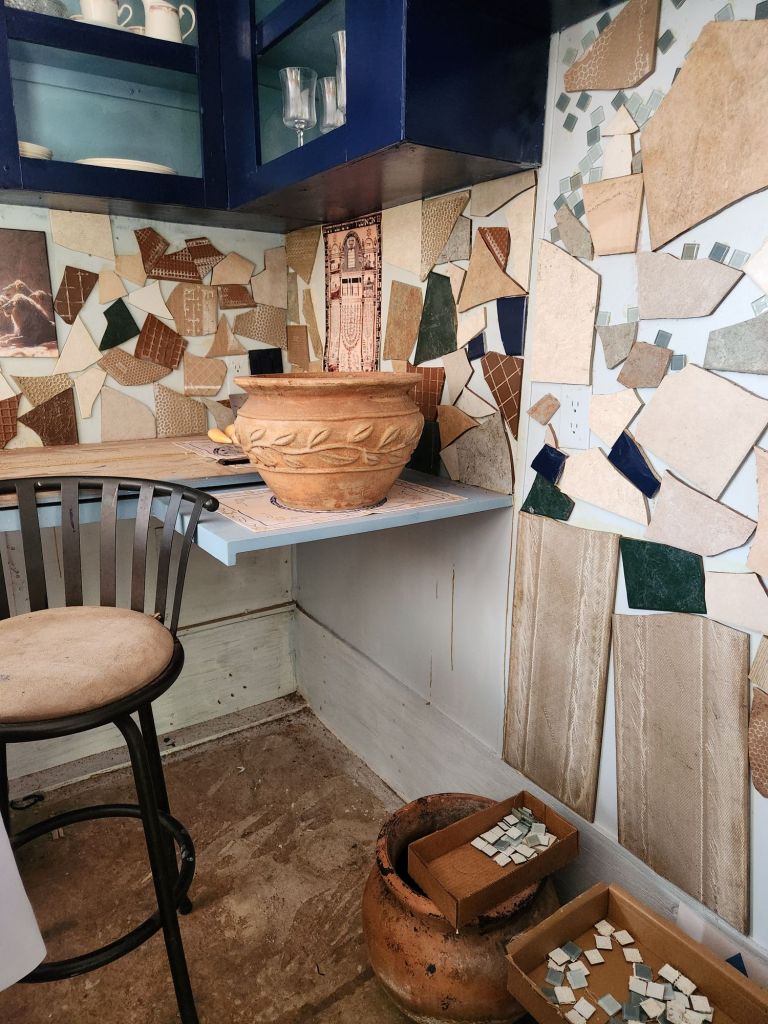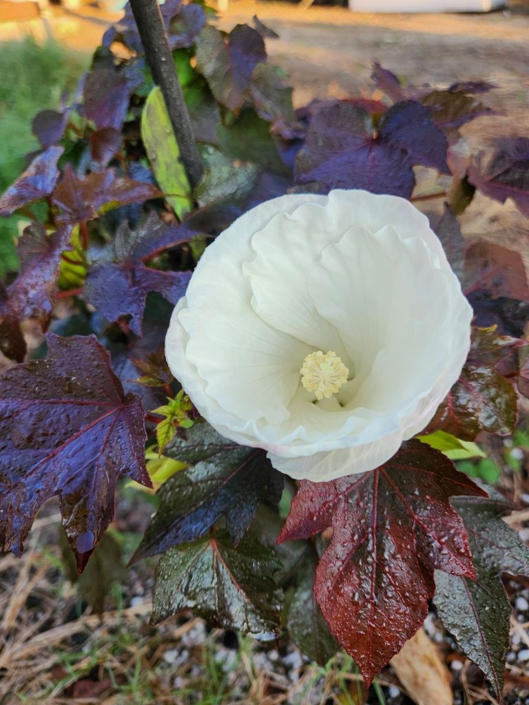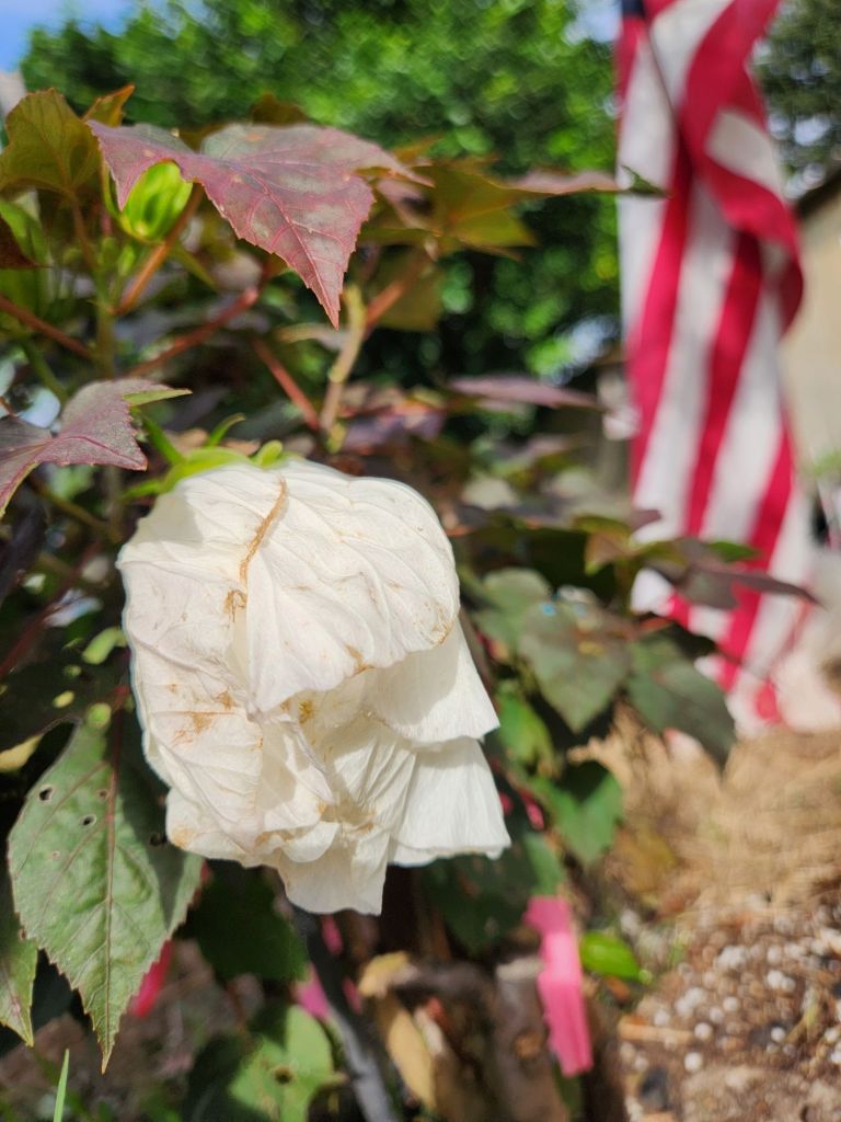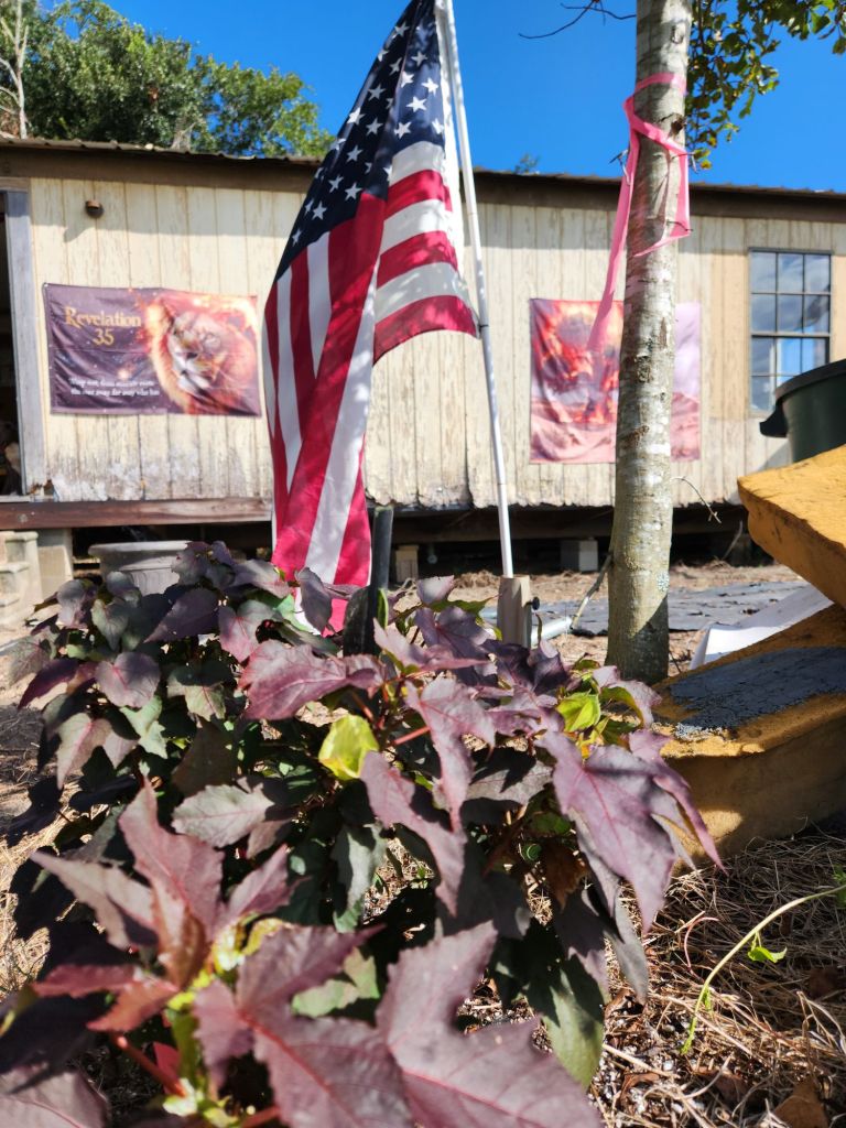 On a PineCone Lily, about to fly away.DeliciousFilling up driveway holes,when it’s Hurricane season. This doesn’t look good.The knockout rosebush vine will circle the window.He talks to us. In 20 minutes,Adonai changes His colorsthat he chooses for his ceiling in his house. Praise G-d.Molds for the sun, on East and West ends.Cookies n Cream Hibiscus is Made in the USA.Elbow grease is needed after the Glyphosate did what it’s made to do.Perfect for a small Mosaic.
