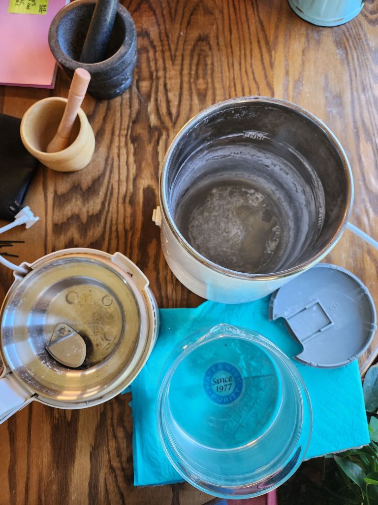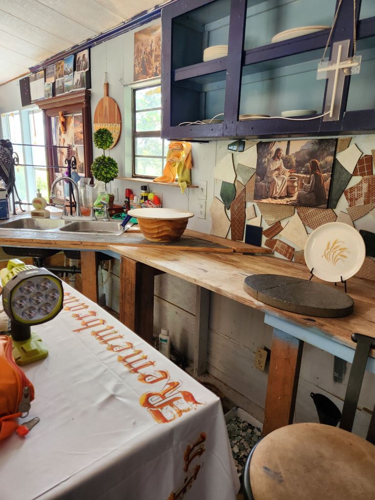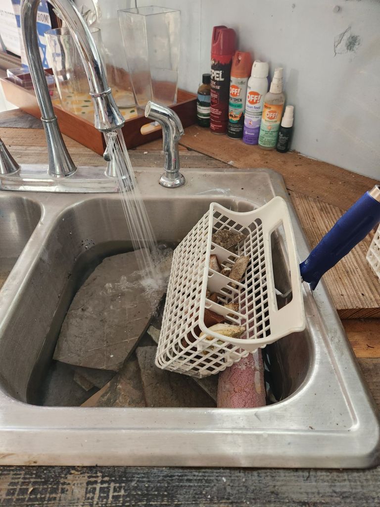 Low Country Boil, if you will allow me to explain.Waterwise water purifier makes water pure.Rocks form after lime dust settled in here, from the purification process. We’re sitting on a lime rock.Alchemists’ toys, once upon a time.Dill goes good with this Low Country Boil.Trying to make Oatmeal cookies.Looks can be deceiving.