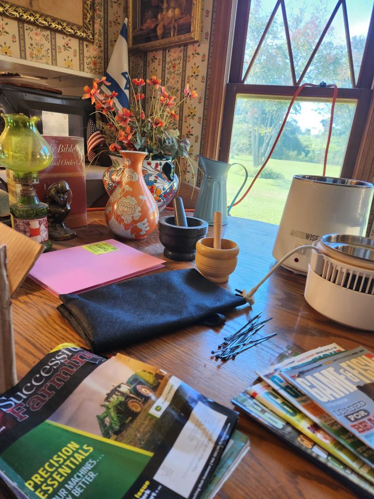 The smoke represents His Holy Spirit via green grapefruit limbs. Hallelujah.Who comes to us. Amen.Just arrived.Now, we get back to work.These are in the upper room. Just for looks, though. Because they’re real. We don’t encourage sots.These are in black and white.Minnie knows she doesn’t want to accuse any of us of starving little ‘ole her. And we know, we’d never do that.